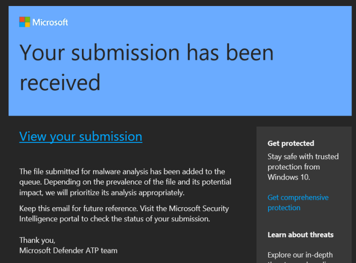 Nun wurde diese falsche Erkennung bei Microsoft Security Intelligence eingereicht.